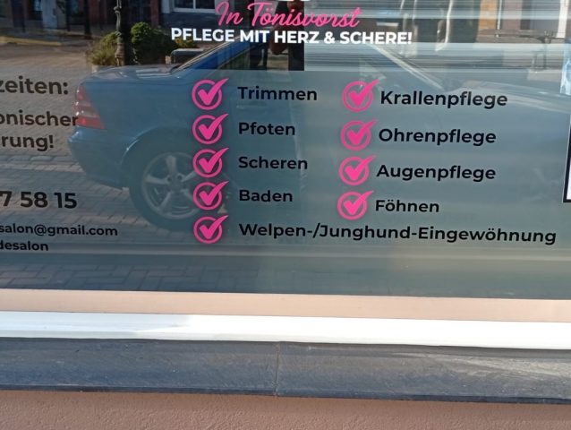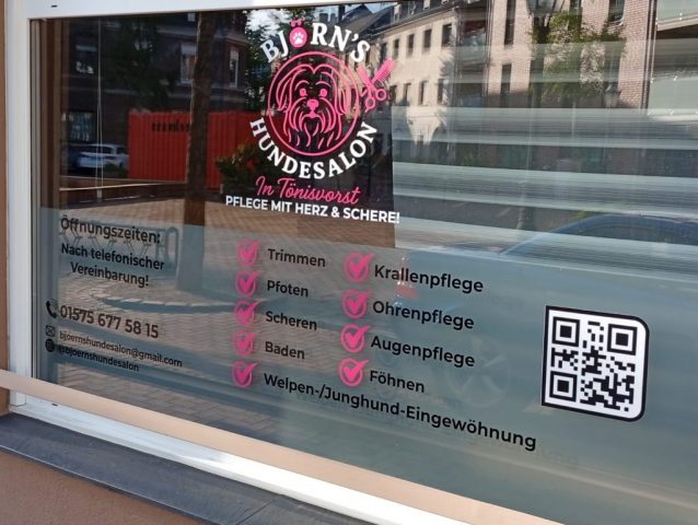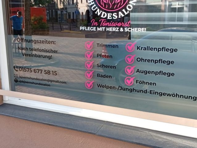 Schaufensterbeschriftung – Ihr Schaufenster als Blickfang Verwandeln Sie Ihr Schaufenster in eine aufmerksamkeitsstarke Werbefläche mit individueller Schaufensterbeschriftung. Wir gestalten und montieren hochwertige Folienbeschriftungen, die Ihre Botschaft klar und wirkungsvoll präsentieren.